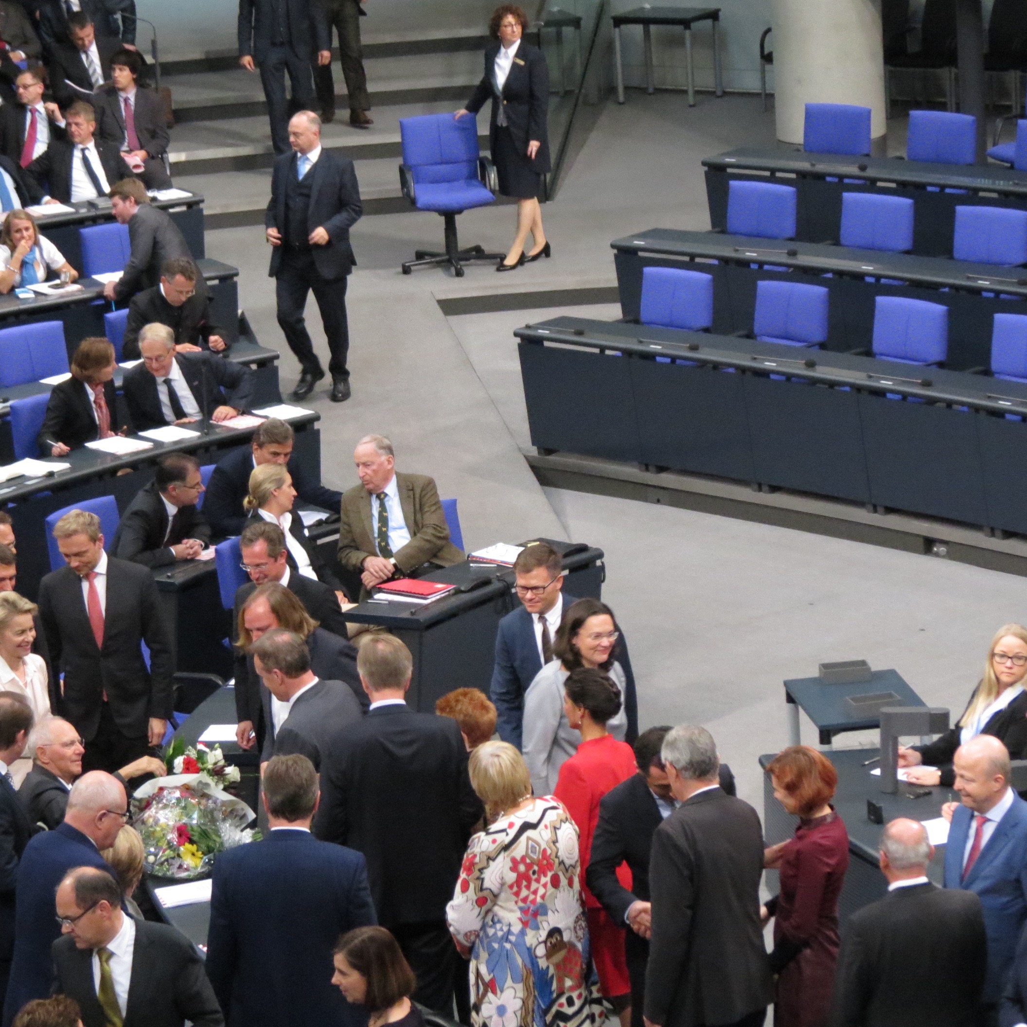 Der SPD-Abgeordnete Scheider erhebt den Vorwurf, dass Angela Merkels Politikstil ein Grund sei für die rechtspopulistische Partei im Bundestag, da sich die Kanzlerin jedem politischen Streit um die besseren Ideen und Konzepte, jeder Debatte um die besten Argumente verweigert hat. Er forderte eine viermal jährliche direkte Befragung der Bundeskanzlerin durch das Parlament. Dabei sollten die Abgeordneten selbst festlegen können, was sie befragen. Dr. Baumann von der AfD kritisierte die Änderung der Geschäftsordnung vor der Wahl. Seit 1848 ist der Alterspräsident das älteste Mitglied des Parlaments. Dies wurde vor der Bundestagswahl geändert und nun ist der Alterspräsident, derjenige, der die längsten Dienstjahre im Parlament hat. Korte stellte den Antrag der Linken vor, die ebenfalls die Regierungsbefragung ändern wollen. Er plädierte dafür, einige Ausschüsse sofort einzusetzen. Der Bundestag ist gewählt und das Parlament kann ab sofort arbeiten und muss seiner Meinung nach nicht die Sondierungsgespräche abwarten, da die Konstitution des Bundestages nicht von den Koalitionsverhandlungen abhängt.