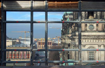 "Der Wind der Geschichte blies oft über dieser Stadt, herb und verhängnisvoll, und man kann sich fast nicht vorstellen, wie es möglich ist, auf demselben Bebelplatz, dem Platz von Goebbels' Bücherverbrennung, an einem riesigen ovalen Tisch zu sitzen, unter etwa hundert Menschen aus der ganzen Welt, die friedlich und konziliant, jeder in seiner Sprache, über die planetaren Probleme, aber auch die eigenen, persönlichen reden. So wird Berlin ein weiteres Mal zum Zentrum auf dem Kompass, der ermöglicht, den richtigen Weg zu finden. Wie eine Dichterin aus Tibet, der sonderliche Designer von Benetton, der weiße Botschafter Avi Primor, der amerikanische Schauspieler Dafoe, die agile Bianca Jagger, ein junger Albaner aus dem Kosovo, der in Schweden als Regisseur arbeitet, wie wir alle gegenüber dem Humboldtdenkmal sitzen und den Nektar einer ganz neuen Freiheit trinken. Da sehe ich dann, wie gut es ist, dass ich mein Alter in Berlin verbringe. Auf einen derart lockeren, unebenen Boden der Geschichte, den viele als ein trostloses und melancholisches Umfeld verstehen."
