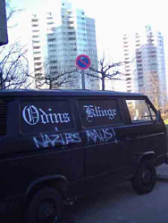 Aber auch in den Innenbezirken, in der Bornholmer Straße im Prenzlauer Berg, gibt es im Hara Kiri ein reichhaltiges Sortiment an rechtsextremen Material. CD’s, T-Shirts und ACAB-Broschen. ACAB ist die Abkürzung für „All Cops Are Bastards” (Alle Polizisten sind Bastarde) . Ein rechtsextremer, etwa 13-jähriger Jugendlicher mit rassierten, blonden Haaren, LONSDALE-T-Shirt, Pit-Bull-Jeans und Springerstiefel deckt sich mit einem Odin-Schmuckanhänger und einer rechtsextremen CD ein. Er möchte nicht fotografiert werden. Seine Eltern wissen zwar um seine Gesinnung, die er mit schlechten Erfahrungen mit Ausländern begründet. Ein Afrikaner verirrt sich in den Harakiri-Laden. |