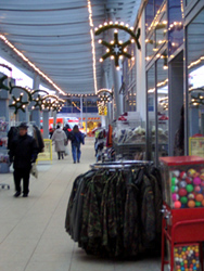 Ein kulturelles Mit- und Nebeneinander ist scheinbar hier möglich. Und Mitten zwischen den Hochhäusern wieder ein kleiner verlassener Tai-Imbiß. In der Arkaden, der Einkaufmeile und Marzahns kulturellem Zentrum werden Bundeswehrparkas verkauft. Dafür scheint es hier eine Nachfrage zu bestehen. Ich frage im Jugendzentrum nach, welche Erfahrungen hier mit Rechtsextremismus gemacht werden. Nein, hier gäbe es keine Probleme mit rechtextremen Jugendlichen. Momentan machen Drogen und Alkohol mehr Probleme als Rechtsextremismus. Die Besucher dieses Jugendhauses sind zwischen 9-14 und vielleicht noch zu jung, so die Leiterin des Jugendhauses. Vor ein paar Wochen hat ein Jugendlicher ein Hackenkreuz an die Außenfassade des Jugendhauses gemalt. Die Jugendhausleiterin meinte, er wurde mit Hausverbot bestraft und hat seine Tat gleich bereut und sein Graffiti gleich wieder weggewischt. |